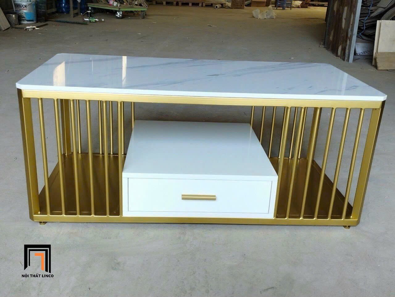 G2 Bàn sofa mặt đá trắng giá rẻ BTPK85 Amish 1m hộc kéo trắng