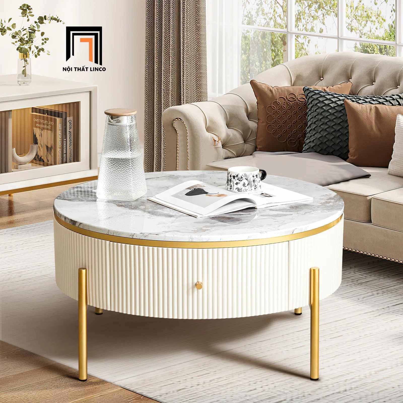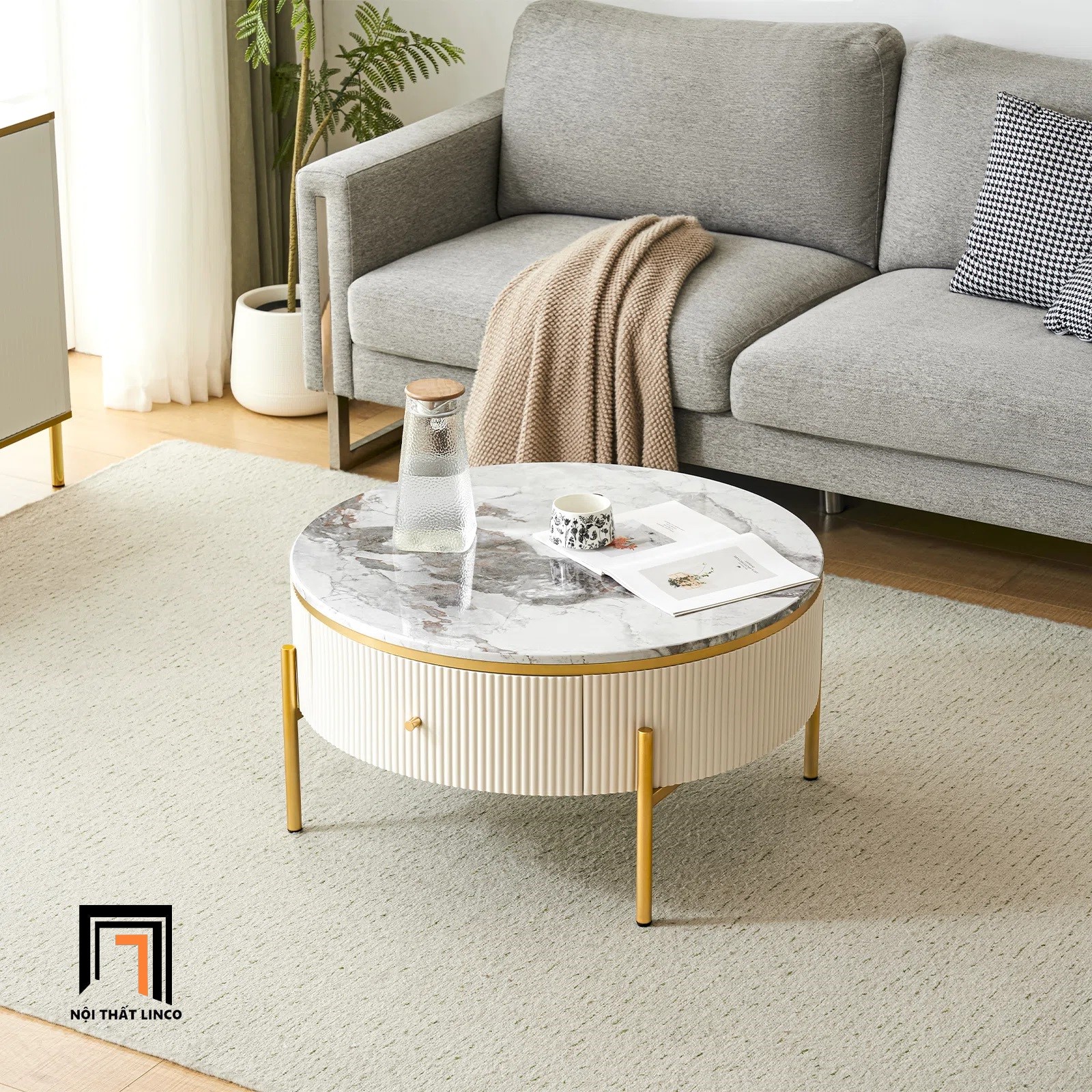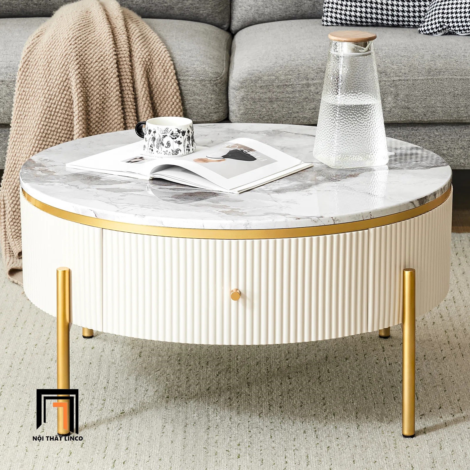 G2 Bàn sofa mặt đá tròn BSF60 Eureka 60 x 45 hộc kéo để đồ nhỏ