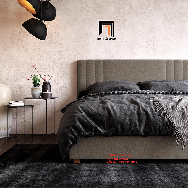 - Chất liệu: khung gỗ bạch đàn, ván plywood, nệm mút foam, vải bố cotton / vải nhung nỉ / da công nghiệp, chân gỗ cao su.