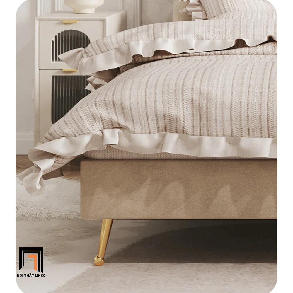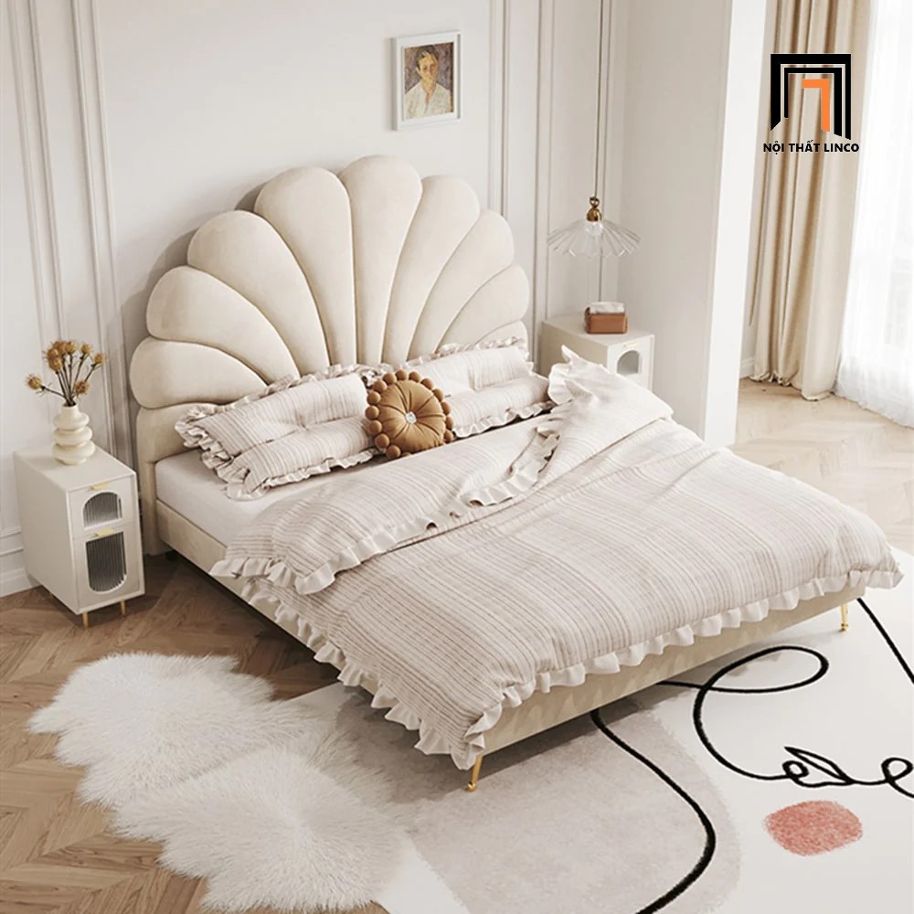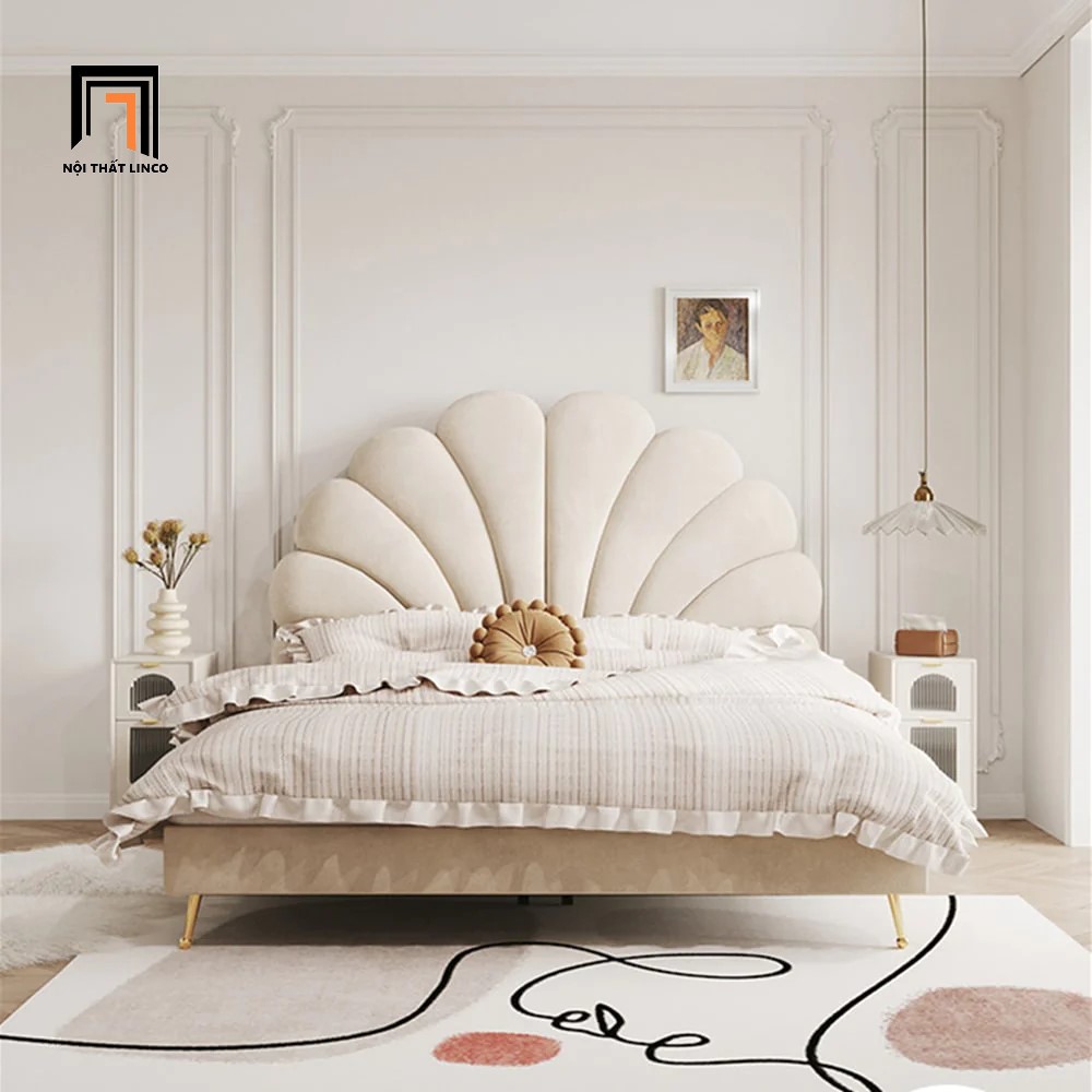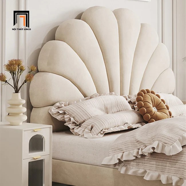 Giường ngủ hình hoa sen GN41 Innis vải nỉ màu be trắng kem