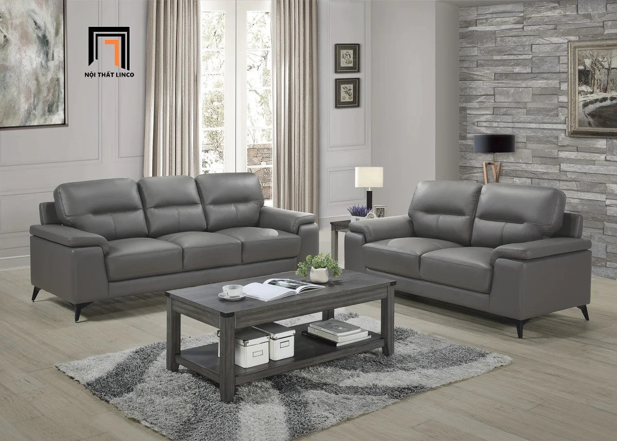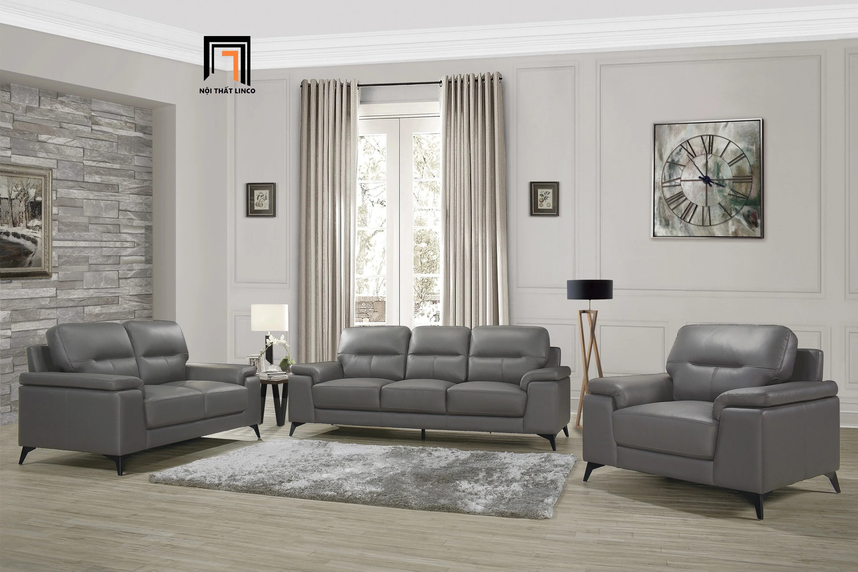 H1 Bộ ghế sofa da công nghiệp xám KT46 Mahler phòng khách cao cấp