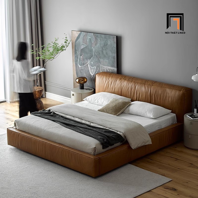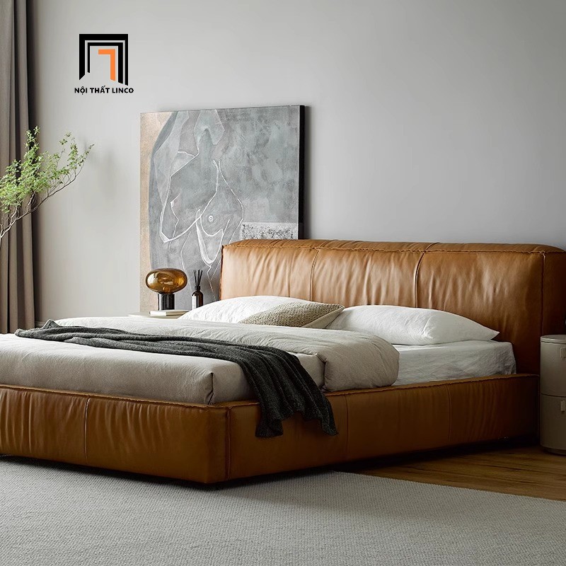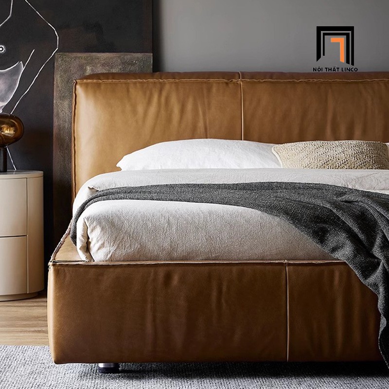 H1 Giường ngủ màu nâu bò cao cấp GN103 Lorne 1m6 x 2m da Pu