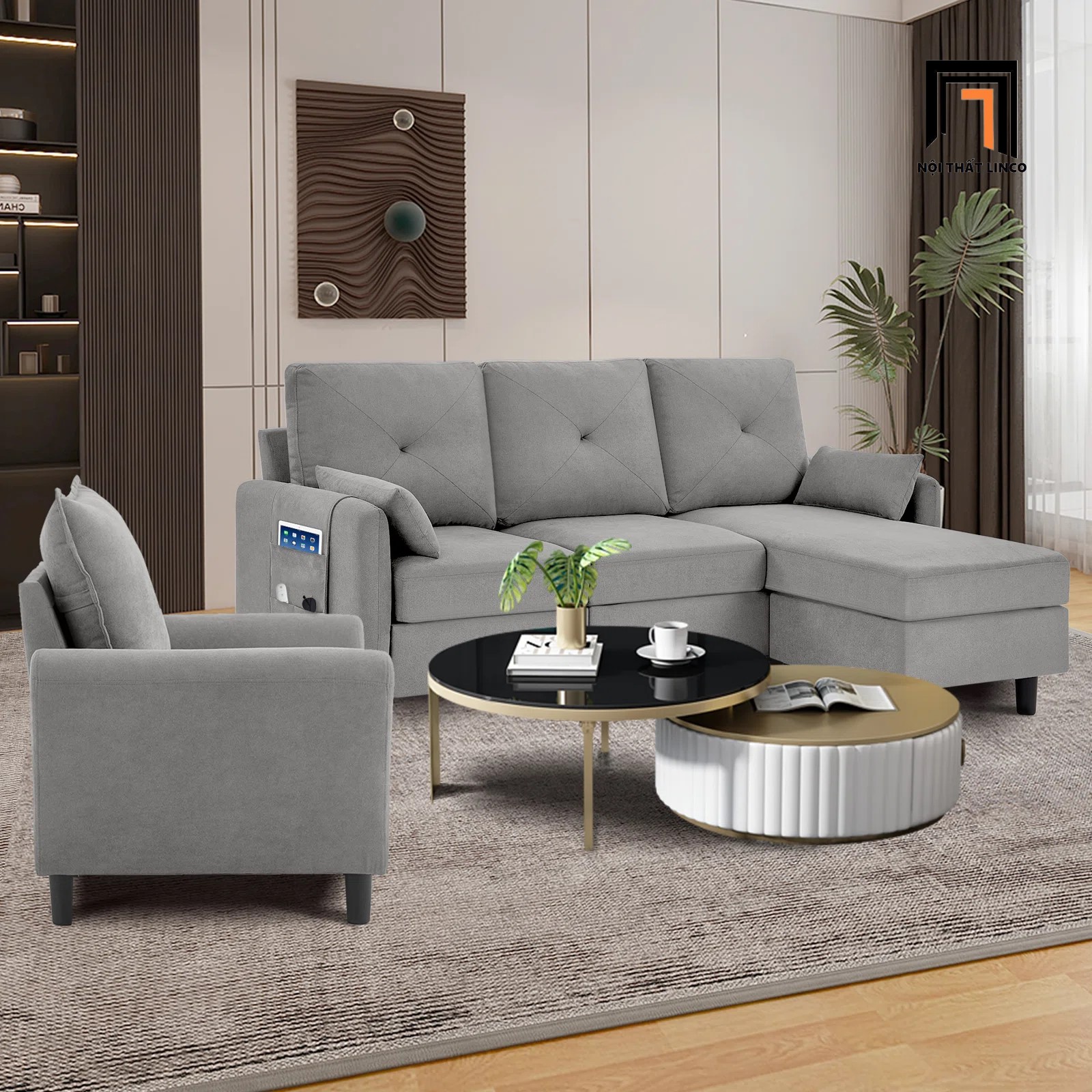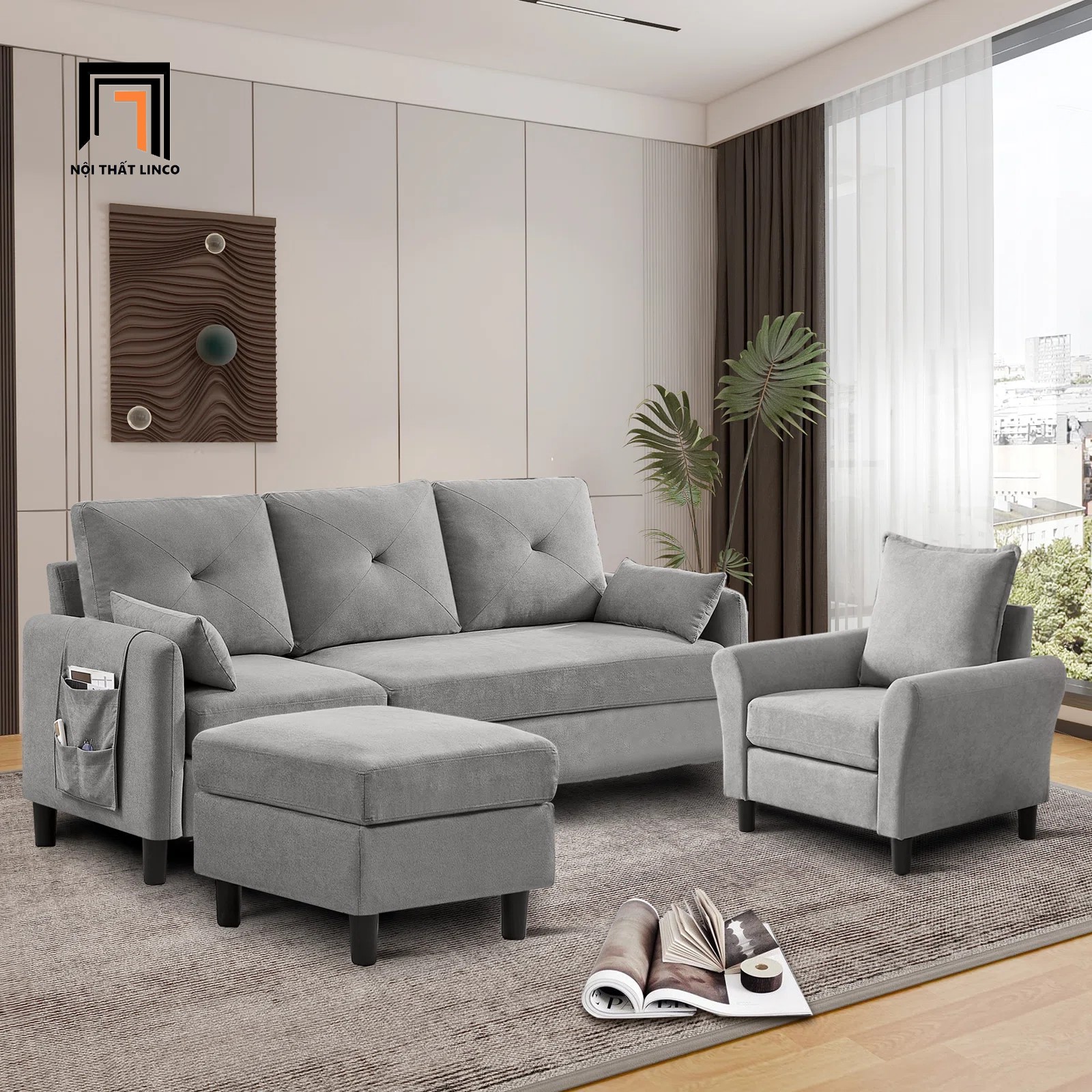 H2 Bộ ghế sofa phòng khách giá rẻ KT126 Penelopa màu xám vải nỉ
