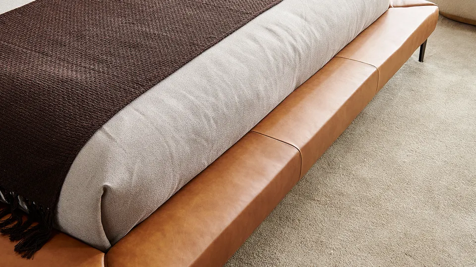 - Chất liệu: khung gỗ bạch đàn, ván MDF lõi xanh phủ melamine trắng 2 mặt, nệm mút foam, da công nghiệp (ngoài ra còn có vải nhung nỉ / vải bố), chân inox sơn tĩnh điện.