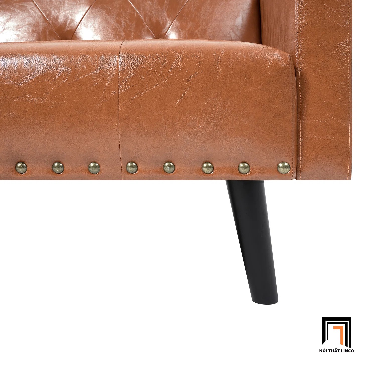 - Chất liệu: khung gỗ bạch đàn, nệm mút foam nguyên tấm (nệm mềm ngồi êm, chống xẹp lún), da công nghiệp (ngoài ra còn có vải nhung nỉ / vải bố cotton), chân gỗ cao su.