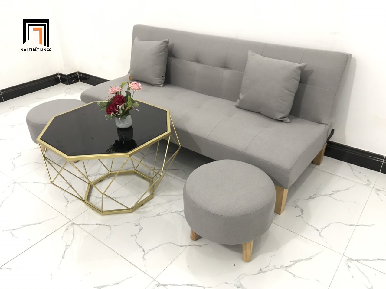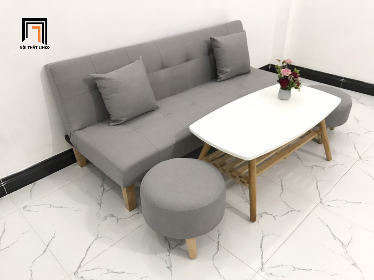 I3 Set ghế sofa giường nhỏ gọn SFG màu xám ghi dài 1m72 giá rẻ
