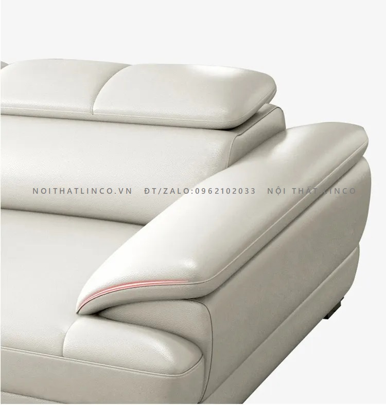 - Chất liệu: khung gỗ bạch đàn, nệm mút foam nguyên tấm (nệm mềm ngồi êm, chống xẹp lún), da công nghiệp cao cấp mềm chống bong tróc với độ bền 5 năm (ngoài ra còn có vải bố / vải nhung nỉ), chân gỗ cao su, gối kê đầu gật gù.
