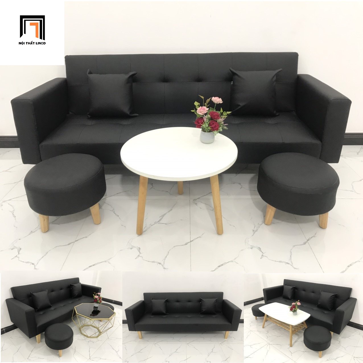I4 Set ghế sofa giường gấp gọn 2m SFGTV da Pu màu đen giá rẻ