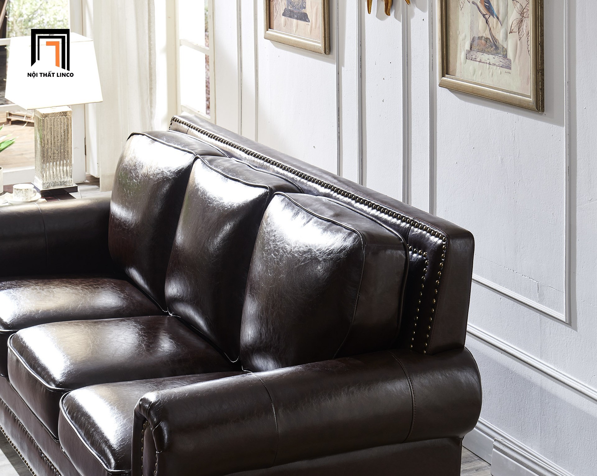 J1 Bộ ghế sofa phòng khách châu Âu KT162 Clyro da Pu nâu đậm