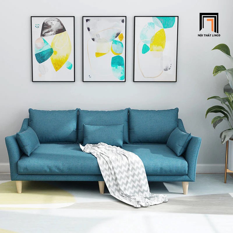 - Chất liệu: khung gỗ bạch đàn, nệm mút foam nguyên tấm (nệm mềm ngồi êm, chống xẹp lún), vải nỉ bố (ngoài ra còn có vải nhung/ da công nghiệp), chân gỗ cao su.