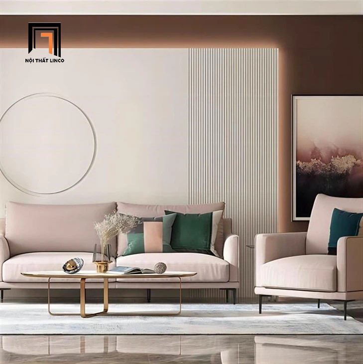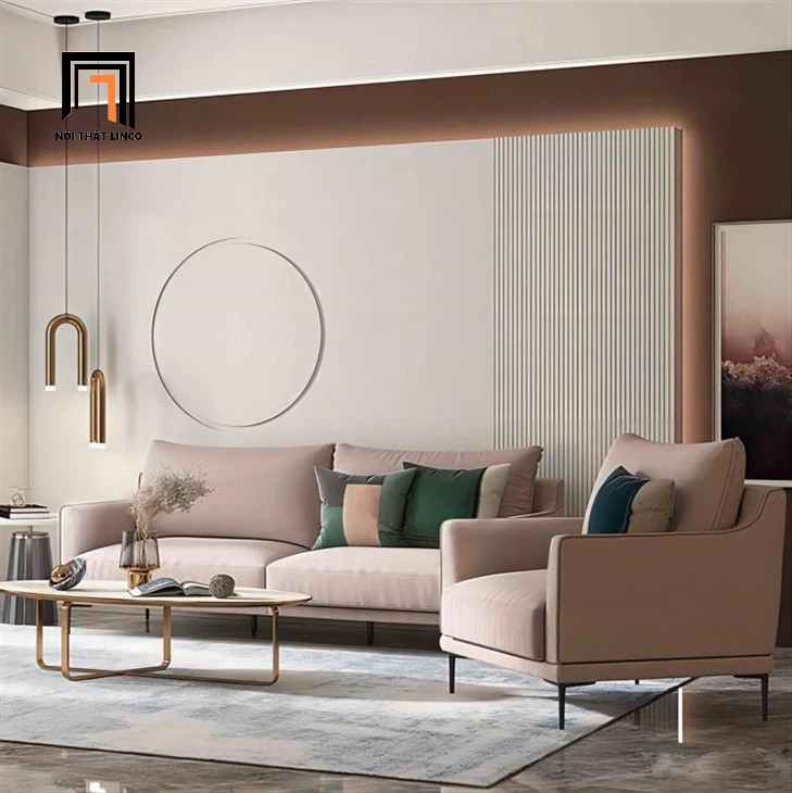 Chất liệu: khung gỗ bạch đàn, nệm mút foam nguyên tấm (nệm mềm ngồi êm, chống xẹp lún), vải nhung (ngoài ra còn có vải bố - nỉ / da công nghiệp - da Pu), chân inox sơn tĩnh điện.