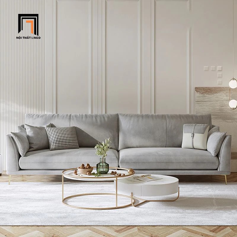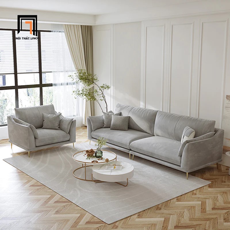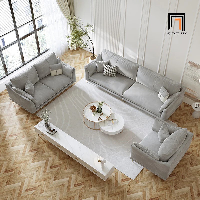 K1 Bộ ghế sofa phòng khách vải nỉ KT89 Riverton vải nỉ xám trắng
