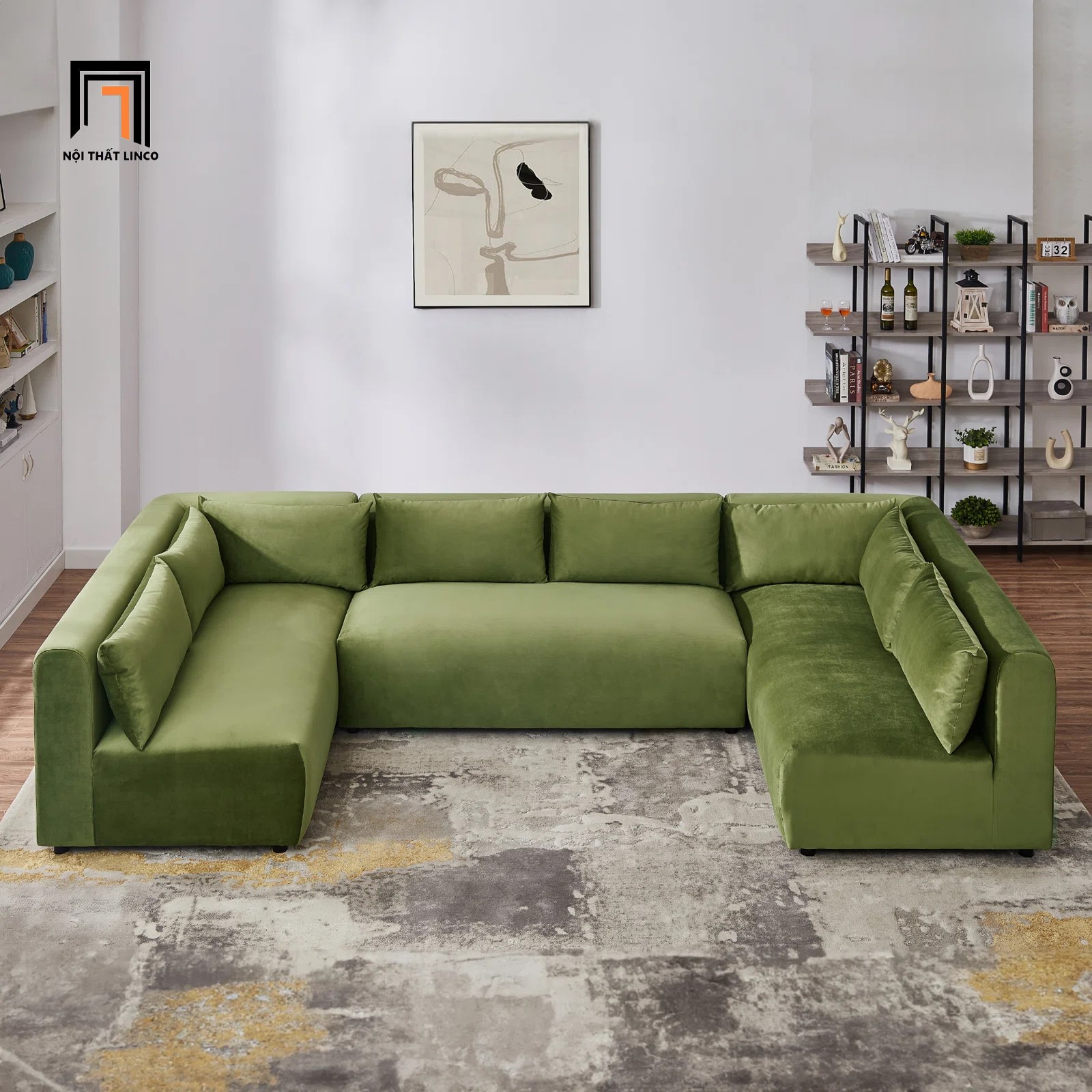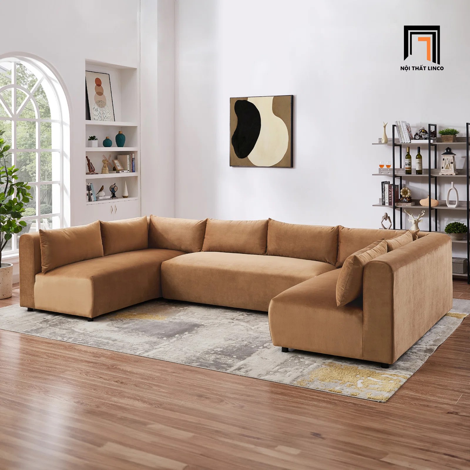 P1 Ghế sofa góc chữ U vải nhung màu cam GT101 Hudson 2m8 x 1m6