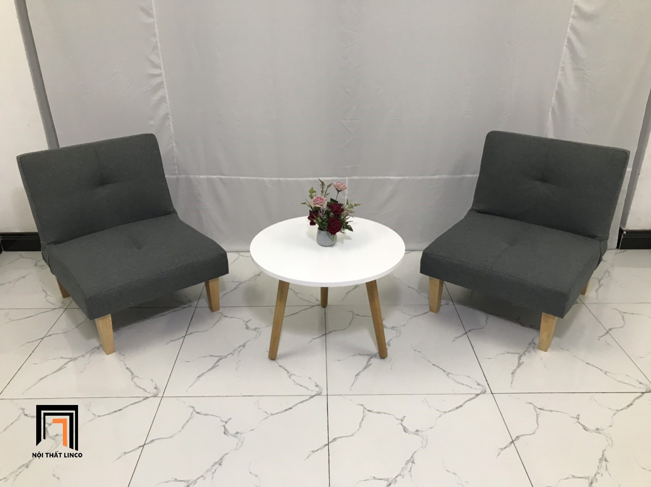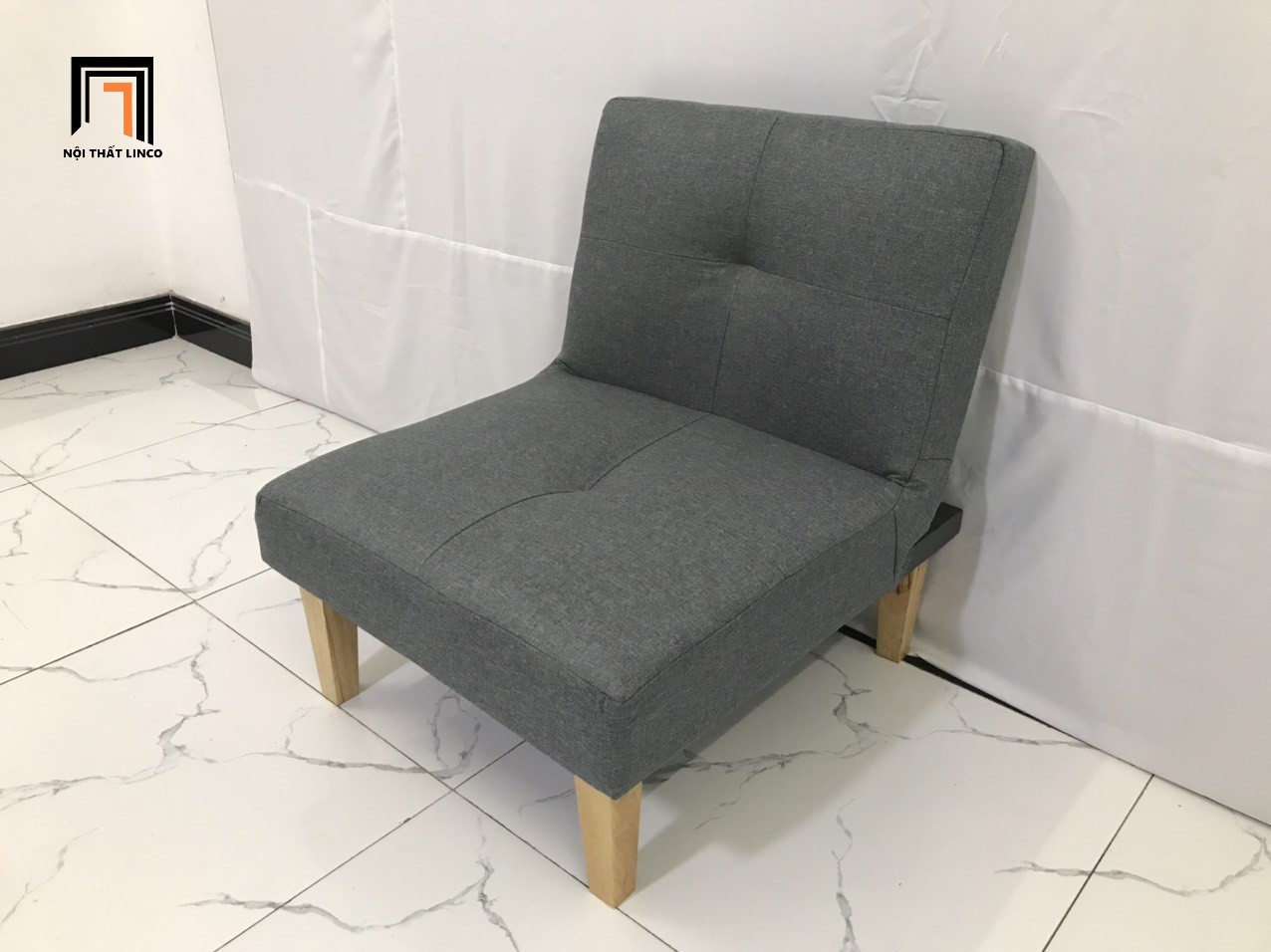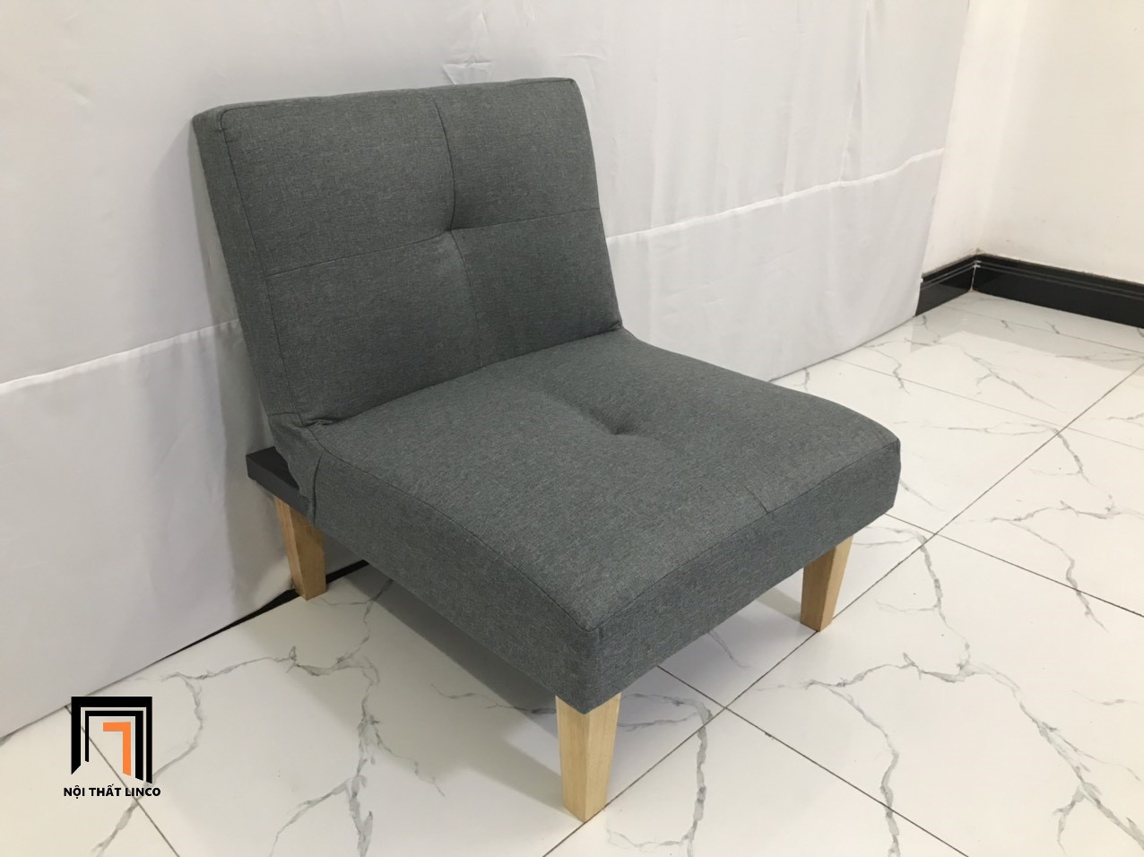 S2 Ghế sofa đơn nhỏ gọn 60cm NS01 màu xám đậm vải bố