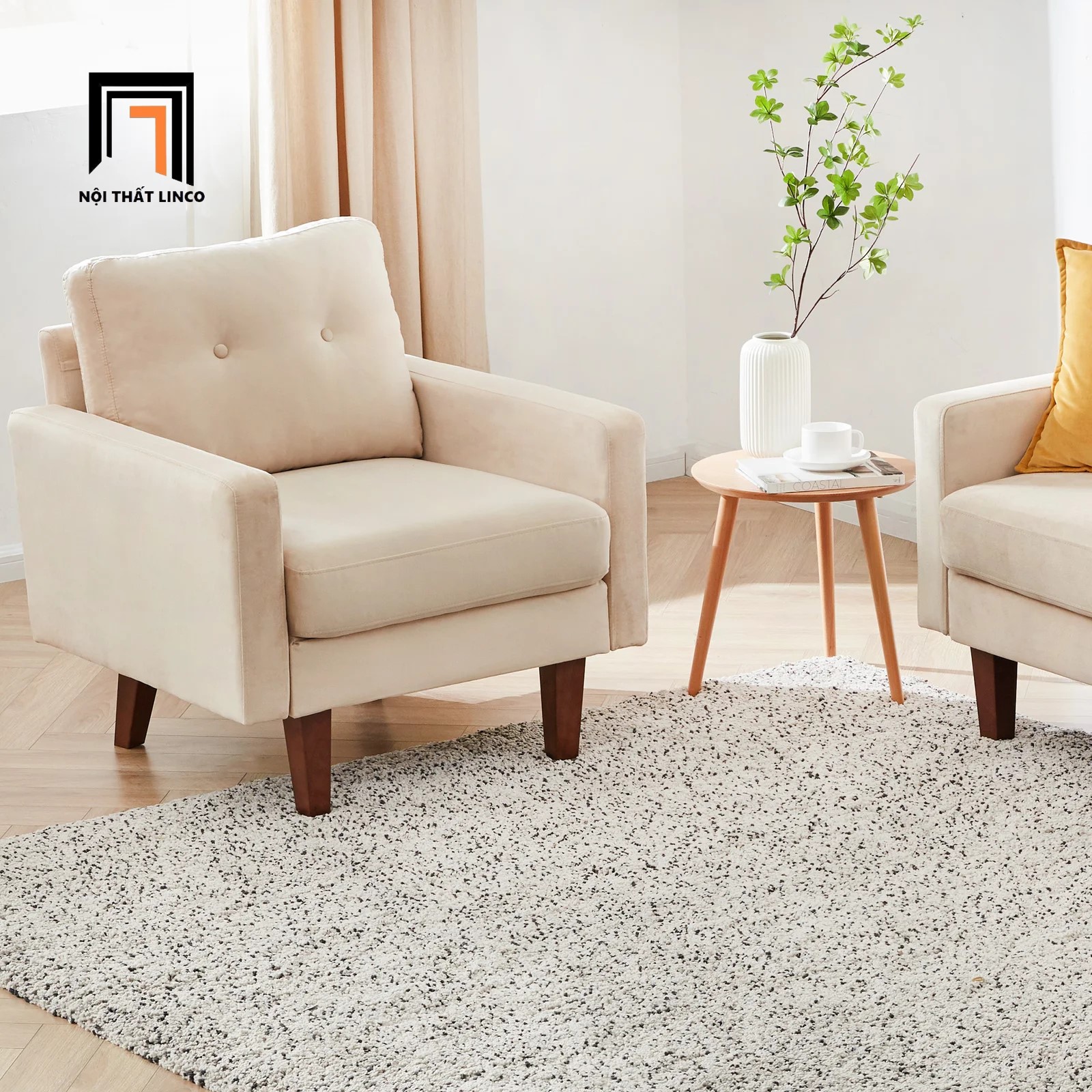 S2 Ghế sofa đơn nhỏ gọn cho văn phòng DT8 Brook vải nhung nỉ