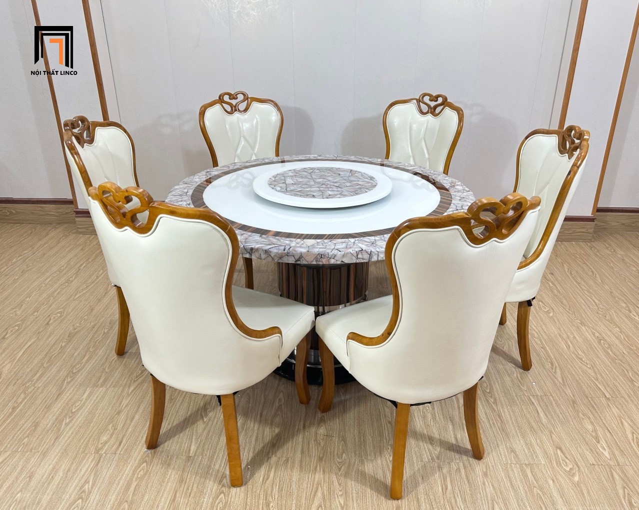 Set bàn ăn tròn 1m3 mặt đá GF35-BAD6-G32-B363 cao cấp
