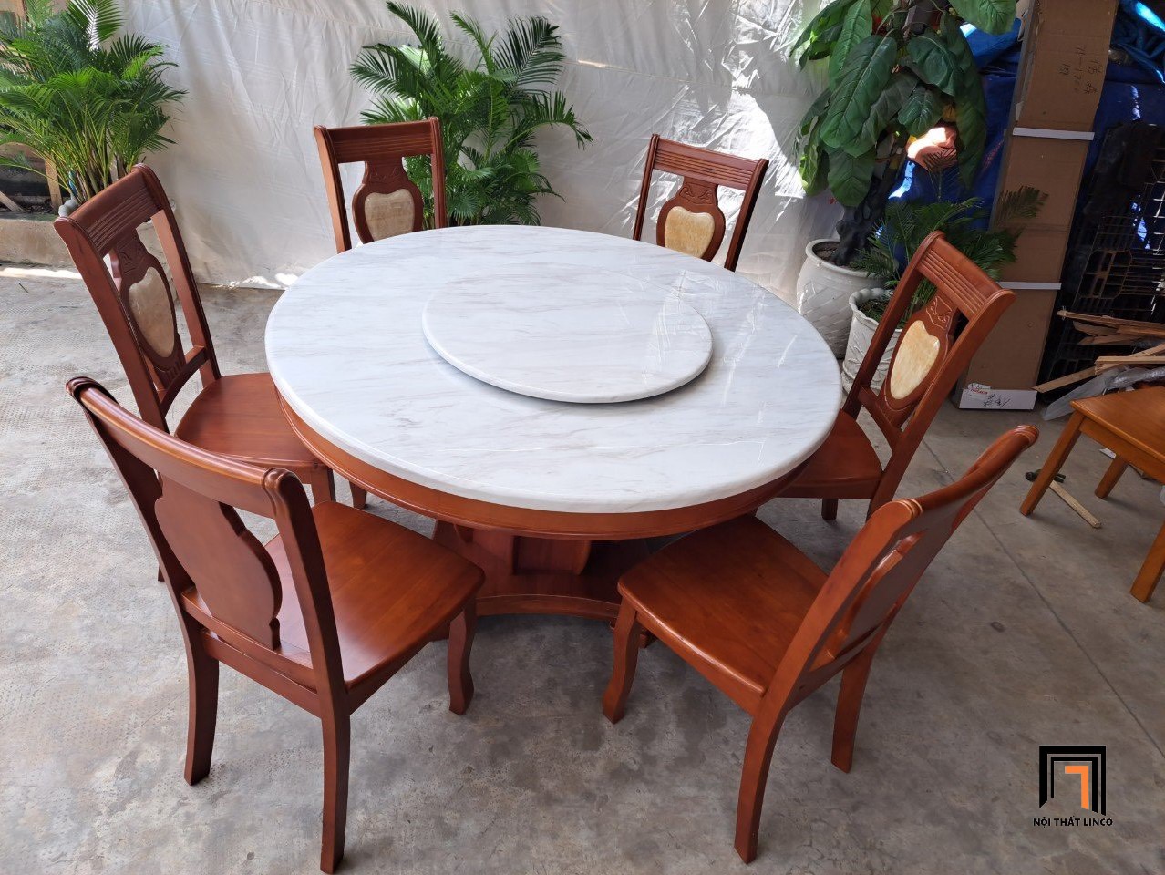 Kích thước: đường kính 1m3, 6 ghế ngồi