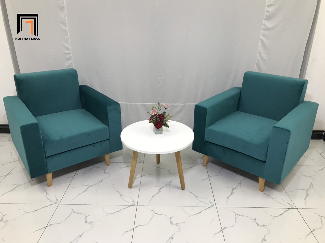 Y1 Ghế sofa đơn cho văn phòng NS05 màu xanh lá vải nhung đẹp
